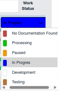 | 8. Go to the right side at the column of 'work status' to set the status for the selected row. | ![]() |