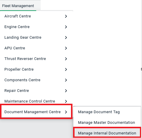 | 3. Click on Document management Centre in the drop-down and select Manage Internal documentation. | ![]() |