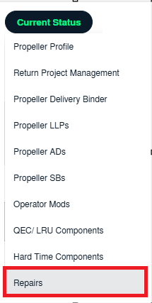 | 4. Hover over the Current Status dropdown and Click on the Repairs option. It will open a new window. | ![]() |