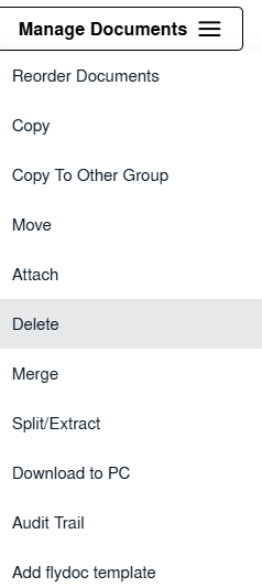 | 7. Hover to Manage Documents button drop down and Click on Delete option. | ![]() |