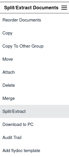 | 7. Hover to Manage Documents dropdown and Click on the Split/Extract option. It will open new window | ![]() |