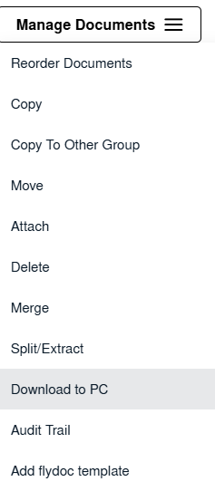 | 7. Hover over the Manage Documents drop down and Click on Set download to pc option. It will open new window. | ![]() |