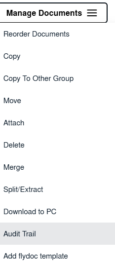| 6. Hover over Manage Documents dropdown and Click on the Audit Trail option. It will open a new window | ![]() |