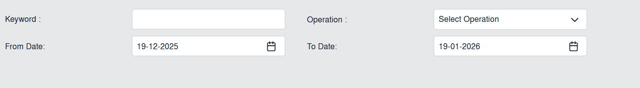 | 7. Select filter types to filter Audit Trail Report like filter by keyword, filter by operations, filter by date etc. Note: User should not be able to select date range more than 90 days. |