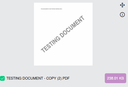 | 6. To Merge two or more Documents scroll down to the Document to be selected and tick the box below the thumbnail. | ![]() |