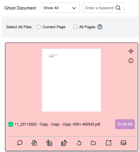 | 6. To Reload Documents, first select Ghost Document : show all documents. Then scroll down to the Documents to be selected and tick the box below the thumbnails. | ![]() |