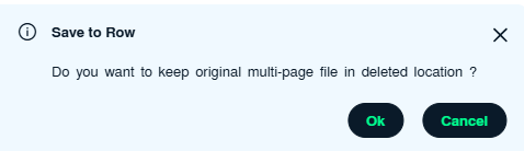 10. If you click on Save to Row, it will give you pop up " Do you want to keep original multi-page file in deleted location ? " Click on OK
