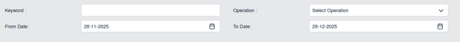 | 8. Select filter types to filter Audit Trail Report. Like filter by keyword, filter by operations, filter by date etc. | ![]() |