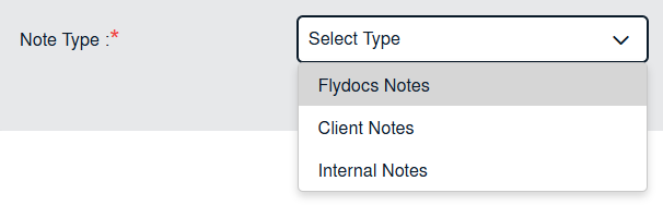 | 6. Select flydocs / Internal/ Clients Notes from the list. | ![]() |