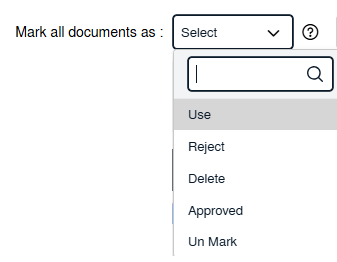| 5. Go to "Mark All Documents as" dropdown and Select option from use, delete, reject, approved, unmark to mark all document as selected option. | ![]() |