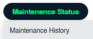 4. Hover over the Maintenance Status button and Click on the Maintenance History button. It will open new window. NOTE: The Maintenance Status button will become active once an aircraft record has been selected. |