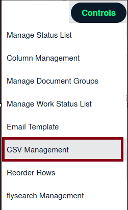 | 5. Hover over the CONTROLS dropdown and Click on the CSV Management option. It will open a new window. | ![]() |
