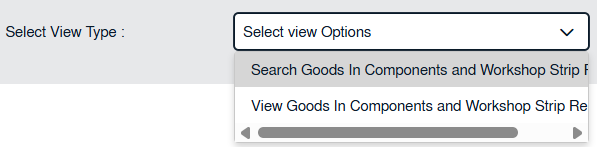 | 5. Select view option that "View Goods In Components and Workshop Strip Reports" for search. | ![]() |